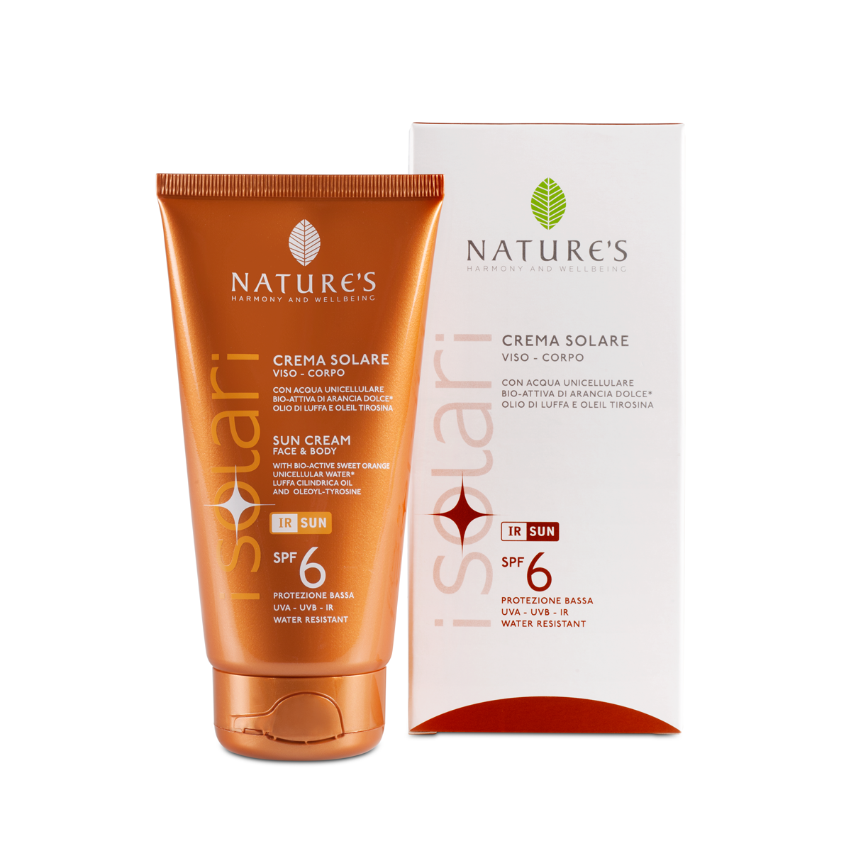 Crema Solare Viso-Corpo con Acqua Unicellulare Bio-attiva di Arancia Dolce bio, olio di Luffa e Oleil Tirosina - 150 ml