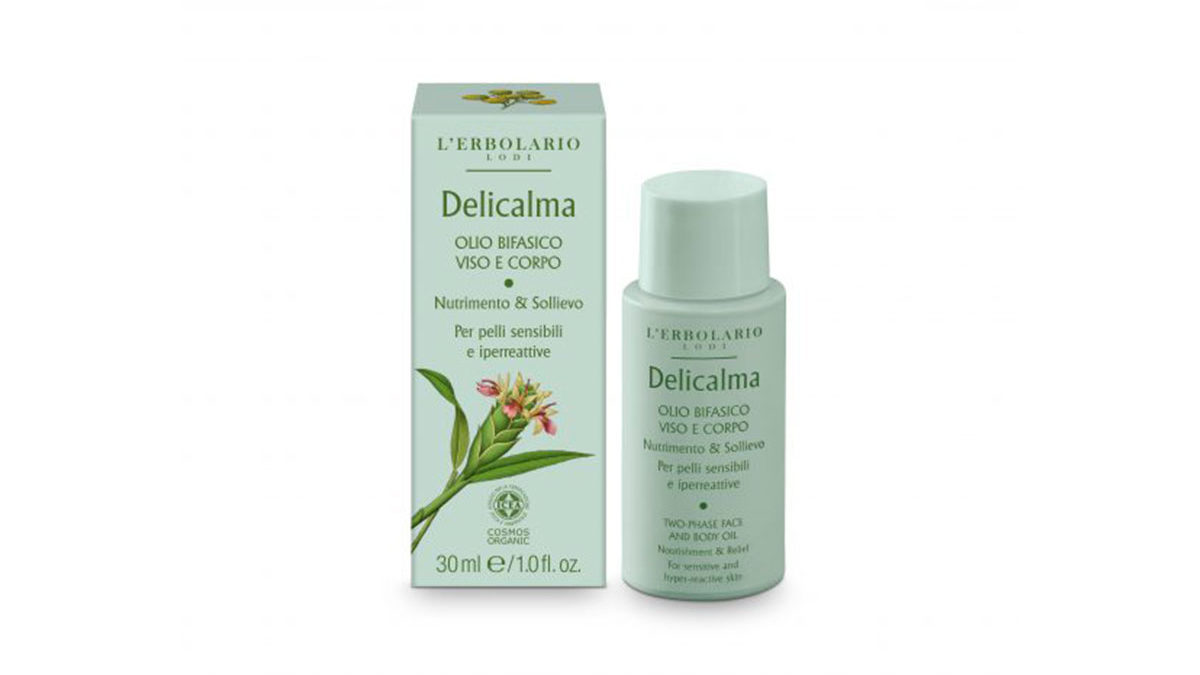 Complesso Delicalma* (Portulaca, Avena biologica, Zenzero biologico ed Elicriso biologico), estratto e acqua distillata di Zenzero biologico, fitocomplesso liposolubile di Portulaca, Avena biologica,Zenzero biologico ed Elicriso biologico, olio di Prugna, oli biologici di Argan e Girasole, Alfa bisabololo biologico, Vitamina E dai semi della Soja.