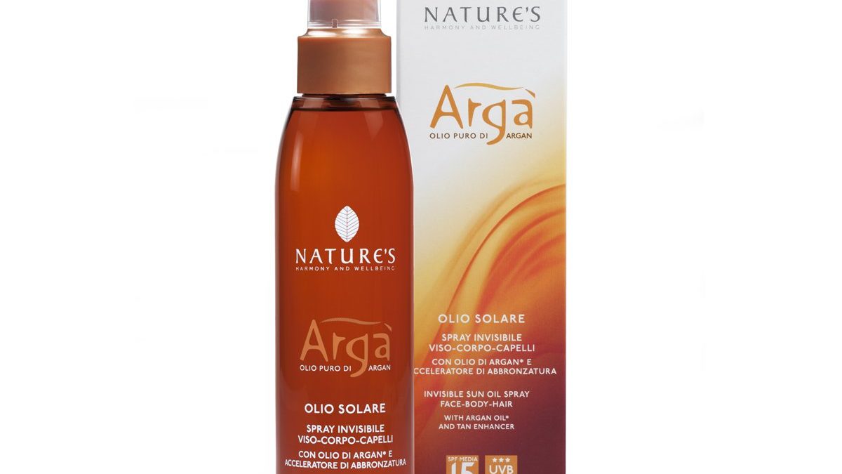 Lo spray invisibile viso-corpo-capelli Argà Olio Solare SPF 15 è un olio spray fresco e leggero di rapido assorbimento, ideale per carnagioni chiare e per pelli normali.
